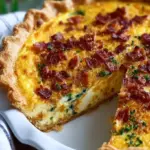 Eine köstliche Bacon und Cheddar Quiche mit einer perfekten Balance aus herzhaftem Geschmack und cremiger Füllung.
