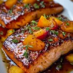 Servieren: Richten Sie die Lachsfilets auf Tellern an und träufeln Sie die Bourbon-Pfirsich-Sauce darüber. Genießen Sie den Anblick und die köstlichen Aromen!