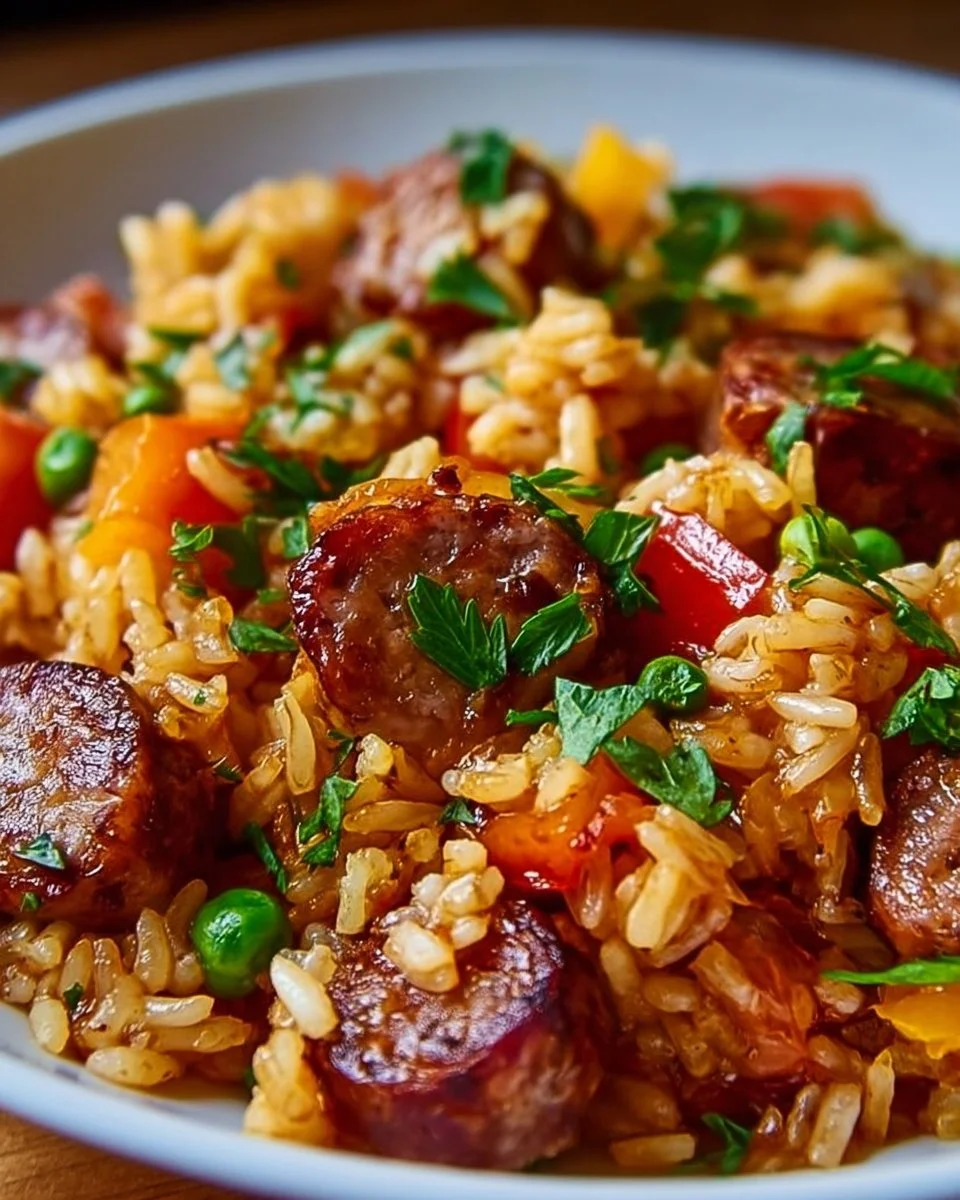 Wurst und Reis Pfanne: Eine geschmackvolle Ein-Pfannen-Mahlzeit