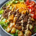 Die Smash Burger Schüsseln sind nicht nur einfach zuzubereiten, sondern holen auch das Beste aus frischen Zutaten hervor. Jede Zutat hat ihren eigenen Platz in dieser köstlichen Komposition. Stellen Sie sich vor, Sie genießen einen herzhaften Bissen, in dem das Rinderhackfleisch sein volles Aroma entfaltet, während die Kühle der Avocado und der Crunch des Salates für einen perfekten Ausgleich sorgen. Und das Beste daran? Diese Schüsseln sind flexibel und anpassbar – ideal für gesellige Abende, ein schnelles Abendessen unter der Woche oder einfach, um ein wenig Freude in Ihren Alltag zu bringen.