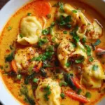Eine einfache, cremige Kokosnuss-Curry-Suppe mit selbstgemachten Klößchen, die Wärme und Lebensfreude in jeden Löffel bringt.