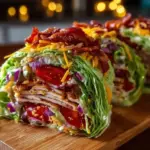Genießen Sie diese erfrischenden Keto Truthahn Club Salat Wraps, gefüllt mit zartem Truthahn, würzigem Cheddar und knusprigem Speck für ein gesundes, low-carb Mittagessen.