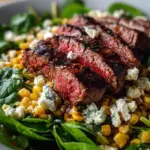 Ein köstlicher gegrillter Balsamico-Steak-Salat, der die perfekte Balance aus zartem Steak, frischen Blättern, süßem Mais und würzigem Gorgonzola bietet.