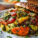 Stell dir vor, du betrittst eine warme, einladende Küche, und der verlockende Duft von frisch gebratenem Gemüse umschmeichelt deine Sinne. Die Farbenpracht der Paprika strahlt in lebhaftem Rot, Gelb und Grün, während die Zucchini und Aubergine geschmeidig und glänzend auf dem Schneidebrett liegen. Die Karotten werfen funkelnde orangefarbene Reflexe im Licht, und die süßen Tomaten erinnern dich an sonnige Sommertage. Dieses Gemüsegericht ist nicht nur eine Augenweide, es ist auch eine Feier der Aromen – ein harmonisches Zusammenspiel aus der süßlichen Frische der Gemüse, dem nussigen Geschmack des Olivenöls und den warmen, erdigen Noten der Gewürze.