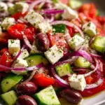 Der Griechische Salat ist mehr als nur ein einfaches Gericht – er ist ein wahres Fest! Mit seiner Frische, den lebendigen Farben und den köstlichen Aromen bringt er jeden aufzuheitern und zu begeistern. Ob als Beilage oder Hauptgericht – dieser Salat verspricht Genuss und Zufriedenheit. Erstellen Sie ihn noch heute und lassen Sie sich von den köstlichen Aromen des Mittelmeers verführen! Guten Appetit!