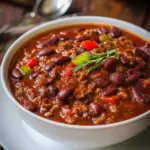 Ein köstliches und herzhaftes Chili mit Rinderhackfleisch und Bohnen, perfekt für kalte Abende und gesellige Zusammenkünfte.