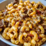 Eine köstliche Kombination aus cremigen Elbow-Makkaroni, herzhaftem Rinderhackfleisch und geschmolzenem Cheddar-Käse.