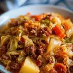 Ein herzhaftes Krautgulasch, das den Gaumen verwöhnt und Erinnerungen an behagliche Familienessen weckt.