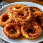 Knusprige Zimt-Apfelringe aus der Luftfritteuse, die mit einer warmen Gewürzmischung den perfekten Snack oder Dessert darstellen.