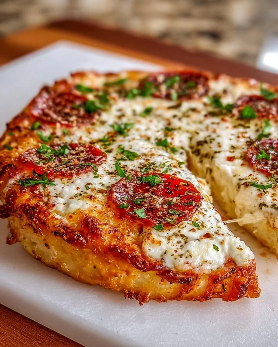 Fluffiger Luftfritteusen-Hüttenkäse-Pizzaboden