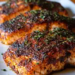 Ein zartes Lachsgericht mit goldener Kruste und würzigen Aromen von Paprika, Knoblauch und Thymian.