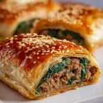 Knuspriger Börek gefüllt mit zartem Hackfleisch, frischem Spinat und Knoblauch, perfekt als Snack oder Fingerfood.