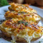Überbackene Kartoffeln mit drei Käsesorten ist mehr als nur ein Gericht – es ist ein Erlebnis, das Freude, Wärme und Zufriedenheit bringt. Jedes Mal, wenn Sie diese wundervollen Kartoffeln auf den Tisch bringen, zaubern Sie ein Lächeln auf die Gesichter Ihrer Lieben. Versuchen Sie, dieses Rezept zu Hause nachzukochen, und erleben Sie den köstlichen Komfort, den es mit sich bringt. Machen Sie es sich bequem und genießen Sie jede Gabel voller Käse und cremiger Kartoffeln. Guten Appetit!